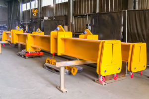 La base d’un palonnier, c’est la poutre. Chaque modèle comporte donc une ou plusieurs poutres (HEB, HEA, IPE, U) afin de réaliser des palonniers monopoutres, bipoutres, en H, en Y, en cadre, en croix, etc… Ces palonniers sont équipés en suspente haute d’un anneau central ou deux, voire plusieurs oreilles de levage, permettant de l’utiliser avec une grue ou un pont roulant et en suspente basse de deux voire plusieurs chapes de levage simples ou doubles, fixes ou réglages équipées de crochets ou autres accessoires permettant la liaison entre le palonnier et la charge à manutentionner.