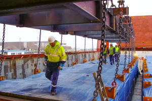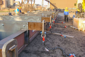Lortel a été la seule société à accepter le défi de faire l’étude et de réaliser un palonnier de 22 mètres de long capable de lever 220 tonnes et ce, dans un délais très court de 5 jours. Ce palonnier devait être livré sur le port de Marseille en urgence afin de décharger des bateaux en retour du Maroc bloqués à quai faute de palonnier.