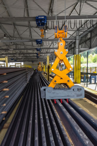 Lortel, grâce à son bureau d’étude, a réalisé, à la demande de son client, une pince capable de lever tout type de rails sans changement de pièces, tout simplement en modifiant les réglages prévus à cet effet. Cette pince est capable de lever 3 rails avec pose et dépose automatique. C’est la seule pince du marché à avoir une telle polyvalence et performance.